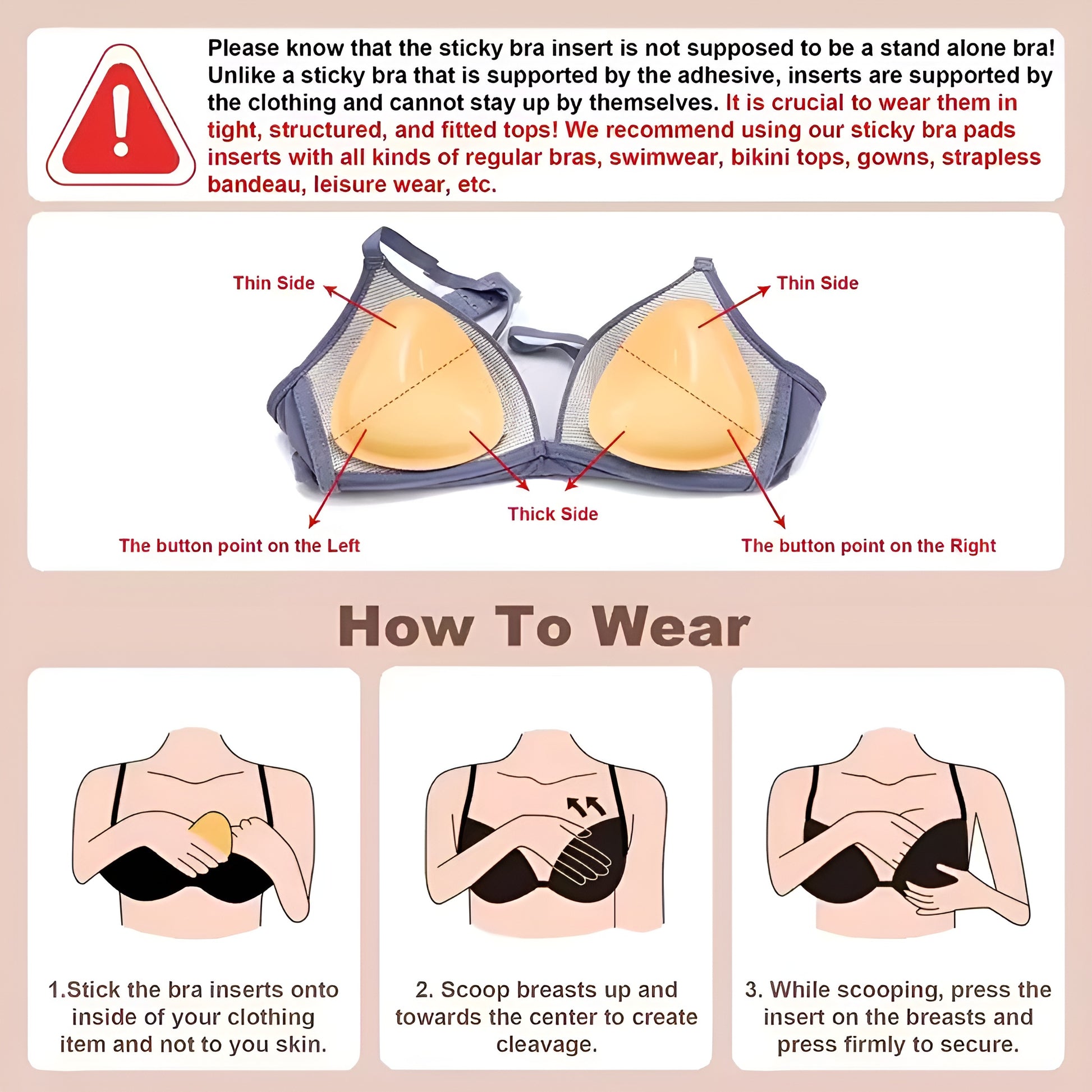 Our sticky bra inserts are full of lift and support benefits for natural shape, enhanced cleavage, and all day confidence.